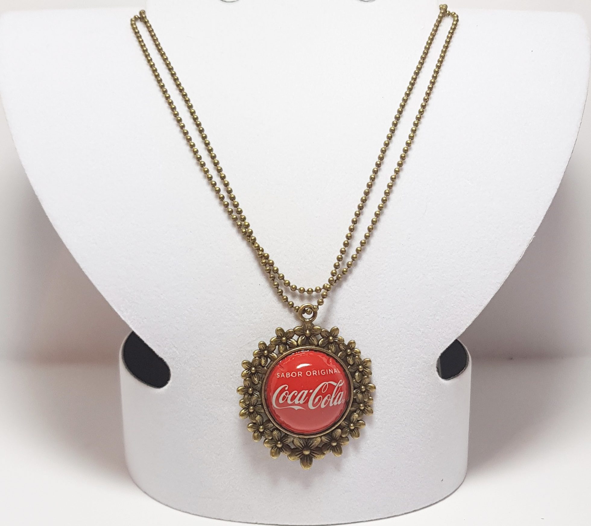 Колье со значком Coca-Cola. Покройте лаком, чтобы детали блестели и не царапались.