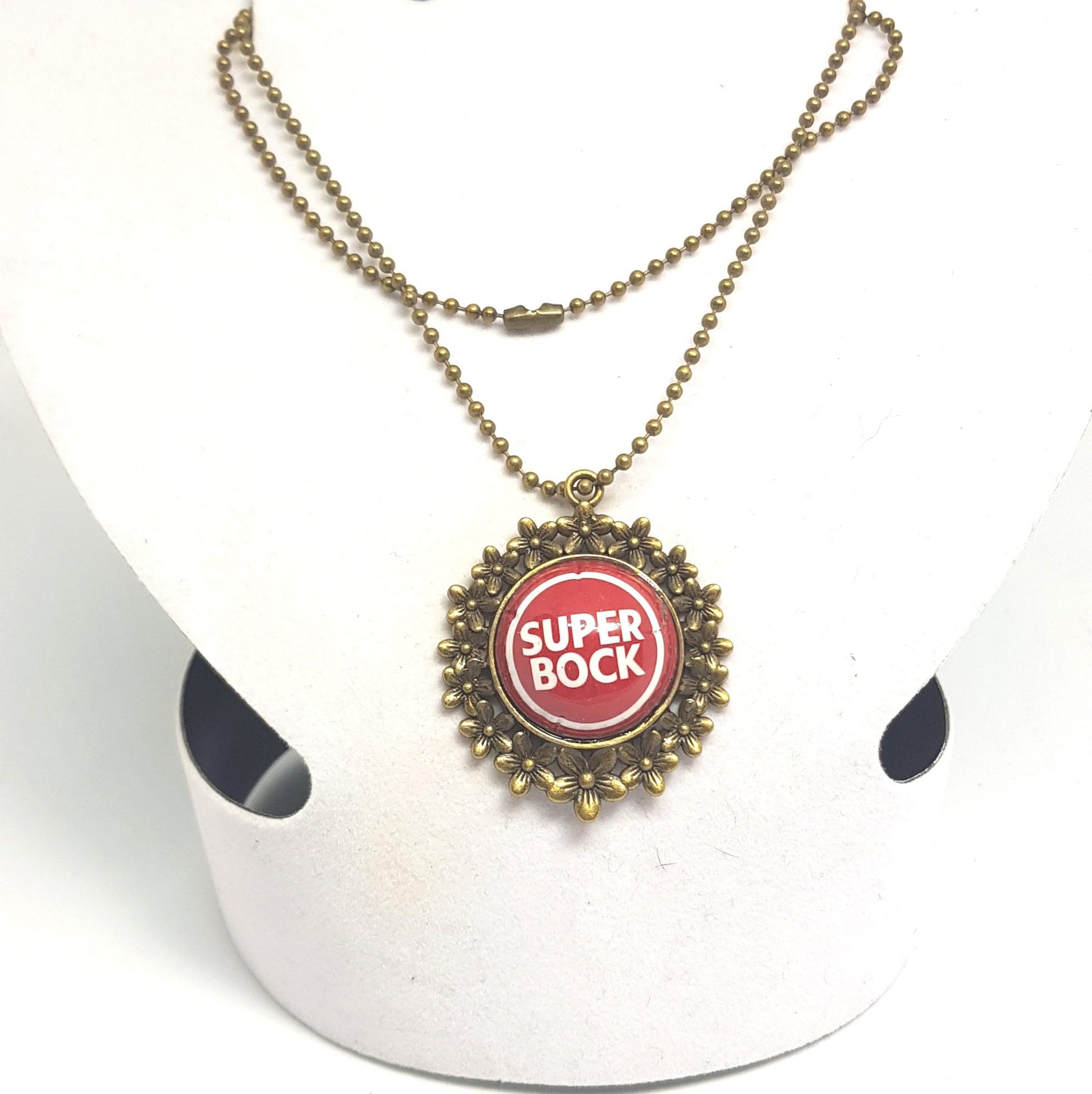Ожерелье со значком пива Super Bock. Покройте лаком, чтобы детали блестели и не царапались.