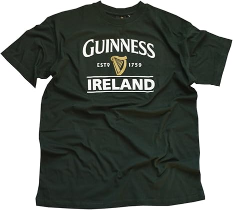 Бутылочно-зеленая футболка Guinness с изображением Ирландии EST. 1759 г. С золотой арфой, средний размер