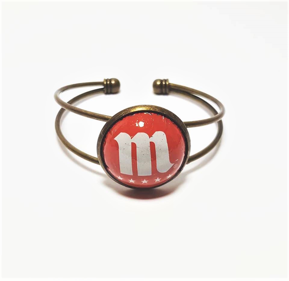 Браслет с пивным значком Mahou Cinco Estrellas. Покрыть лаком, чтобы изделие блестело и не царапалось.