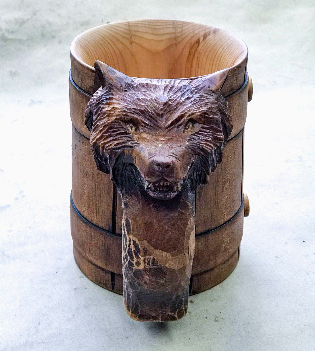 Резная кружка из натурального сибирского кедра, который произрастает только на территории Сибири.