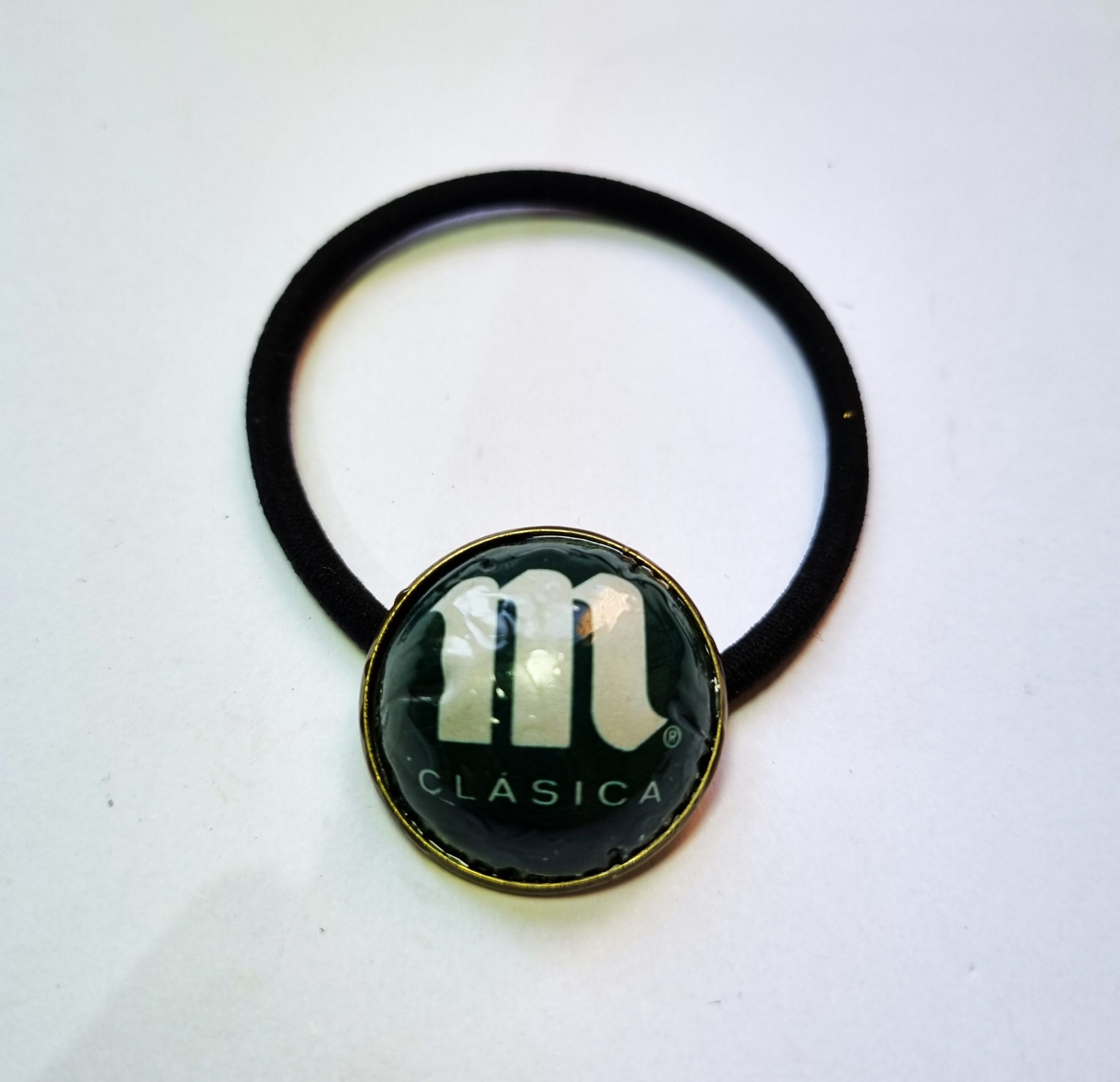Резинка для волос, сделанная вручную с использованием переработанных пивных листов Mahou Clásica. Яркая и кристальная отделка, выполненная смесью лаков, благодаря чему изделие блестит и не царапается. Таким образом, он прослужит вечно, не потеряв рисунок листового металла.