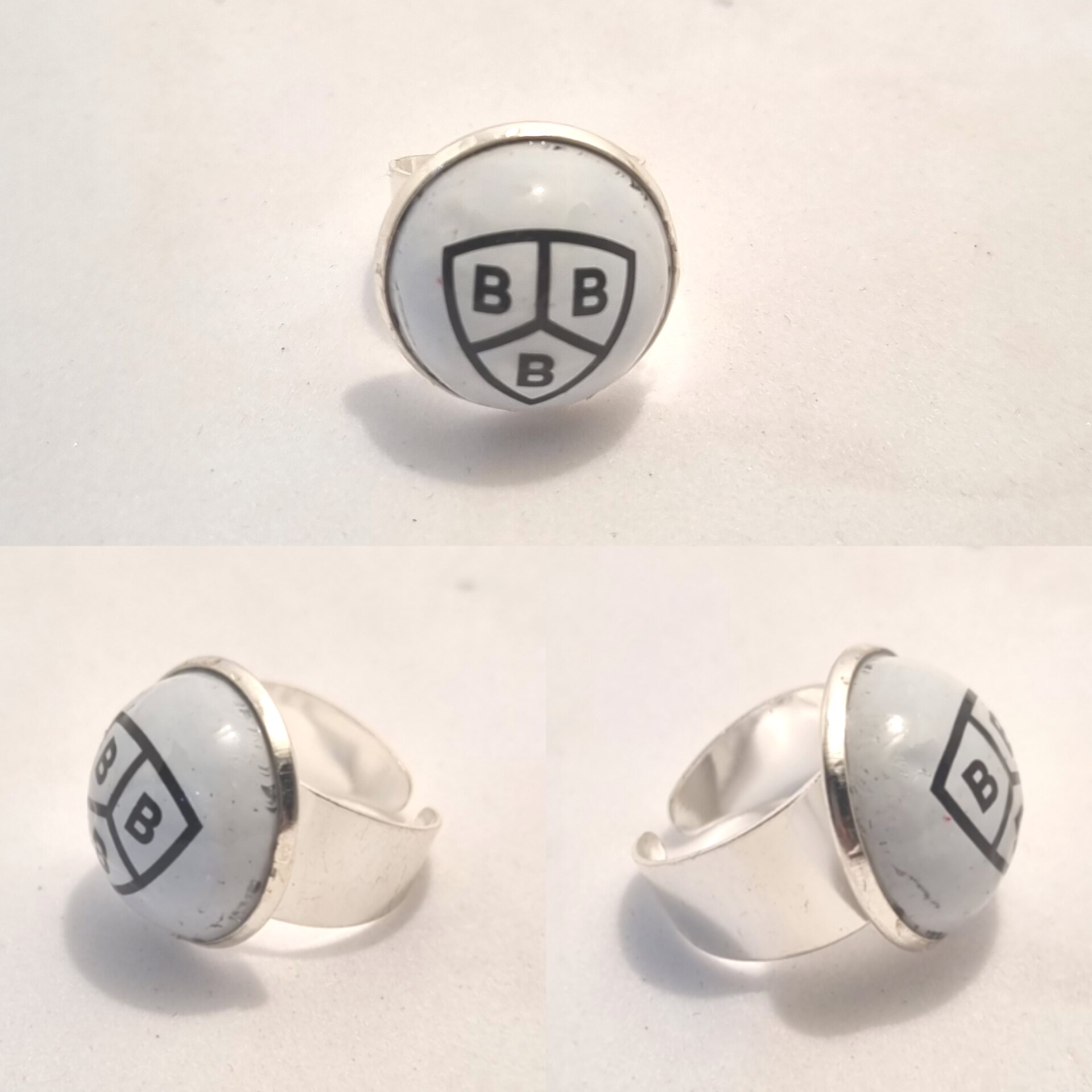 Регулируемое кольцо из металла, изготовленного из пива баскской пивоварни Bidassoa. Покрыть лаком, чтобы изделие блестело и не царапалось.