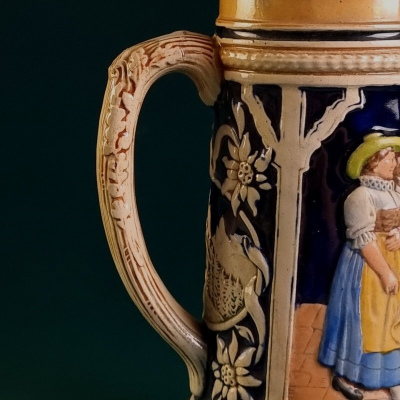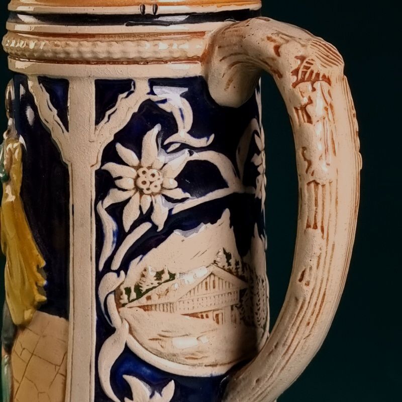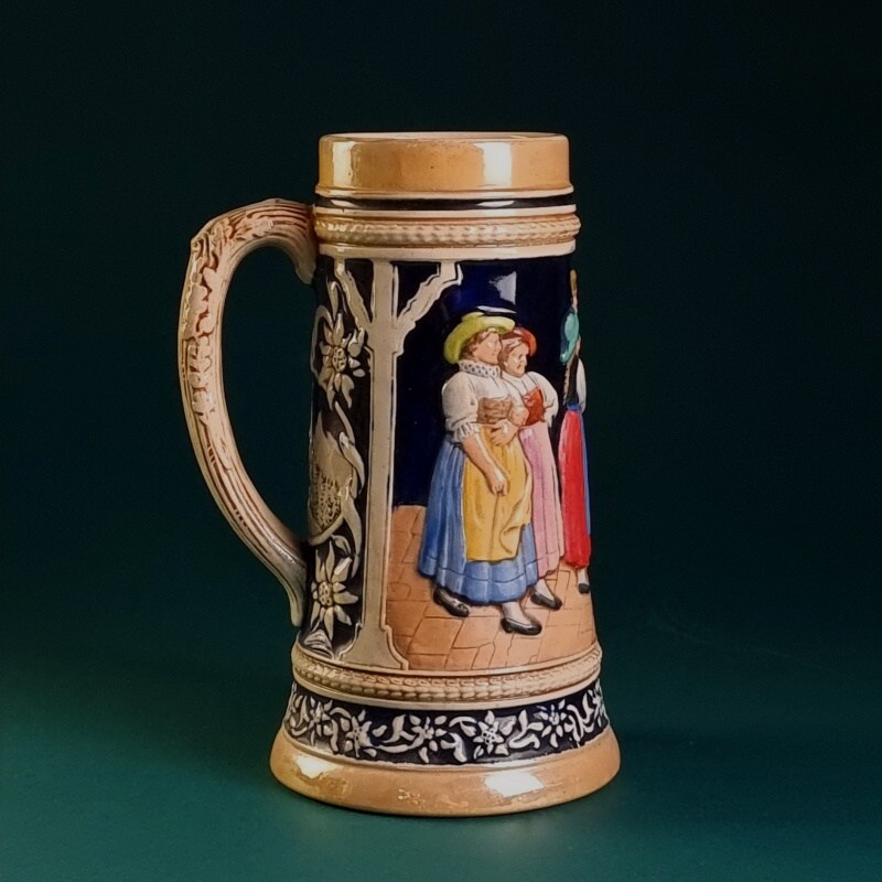 Немецкие пивные кружки — часть многовековой традиции Германии. Пивные кружки в Германии появились в начале XVI века. Замечательная, красиво расписанная винтажная керамическая пивная кружка в отличном состоянии. Ручная роспись в Германии. Традиционные немецкие сцены.