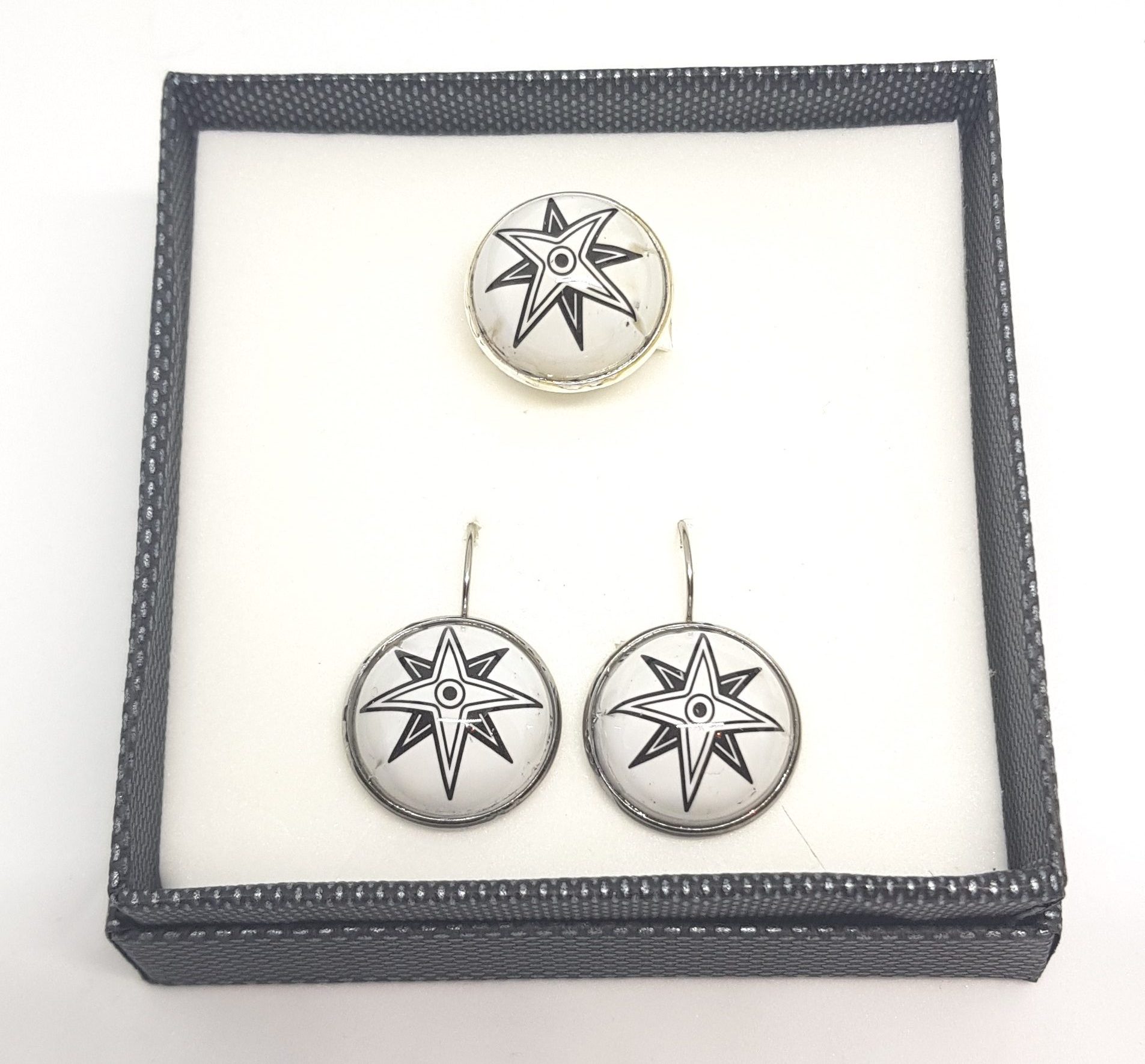 Набор из регулируемого кольца и серег из нержавеющей стали, изготовленных вручную с оттенком вторичной переработки, со значком пива Nomada. Яркая и кристальная отделка, выполненная смесью лаков, благодаря чему изделие блестит и не царапается. Таким образом, он прослужит вечно, не потеряв рисунок листового металла.