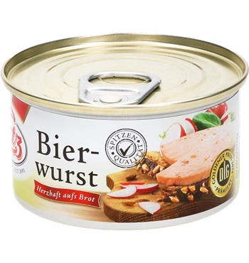 С пивной колбасой Lutz вы можете насладиться сытной колбасой со сладким вкусом, который дополняется вкусом чеснока и горчичных зерен. Пивная колбаса, сделанная по лучшей традиции, идеально подходит для отдыха или пикника в окружении зелени в практичной порционной коробке.