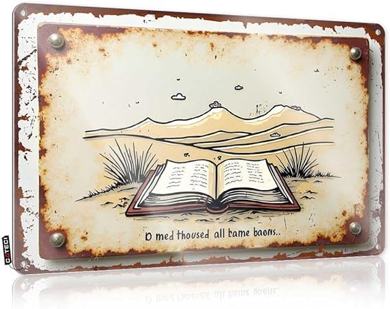 Металлическая вывеска для бара FZFN, декоративная, с изображением открытой книги посреди спокойного пейзажа с горами на заднем плане, забавная вывеска для пива, бар, мужская комната, украшение (30 x 40 см)