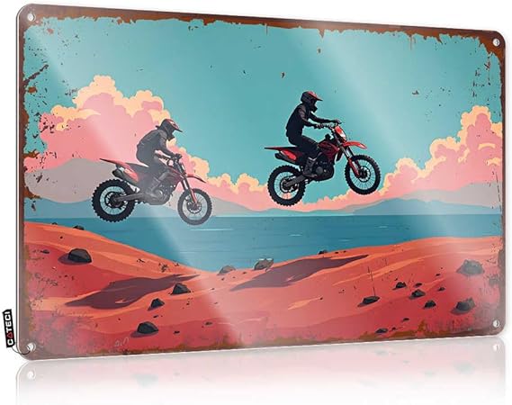 FZFN Bierschilder aus Metall, Vintage-Riders, die bei Sonnenuntergang über die Wüste schweben, Blechschild für Schlafzimmer, Tür, lustige Raumschilder (30 x 40 cm)