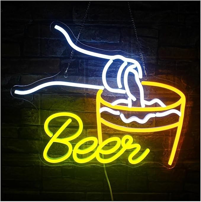 Мягкий цветной свет легко создаёт романтическую или оживлённую атмосферу в любой комнате, что делает эти вывески идеальными для спален и гостиных. Эти красочные неоновые вывески с пивной тематикой идеально подходят для украшения стен дома, в барах, отелях, на кухнях, а также для дней рождения, свадеб и вечеринок. Размер вывески: 39,8 x 32,8 см. Вы получите красивые неоновые вывески, которые можно повесить на стены или окна, или поставить на стол. Яркое, но энергоэффективное освещение обеспечивает беззаботное и длительное использование в повседневном декоре. › Подробнее о товаре