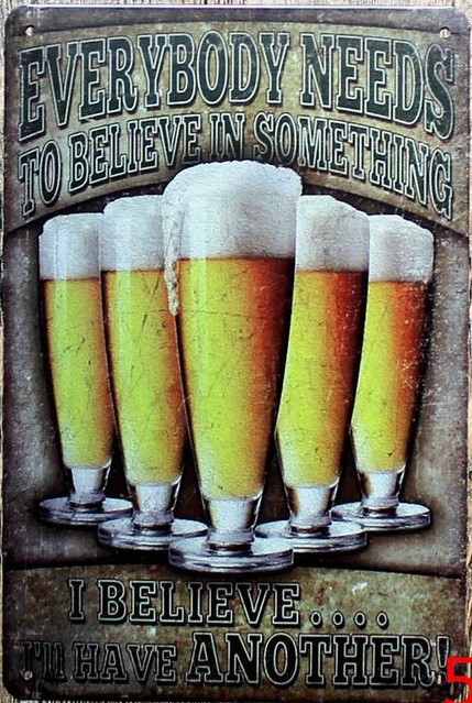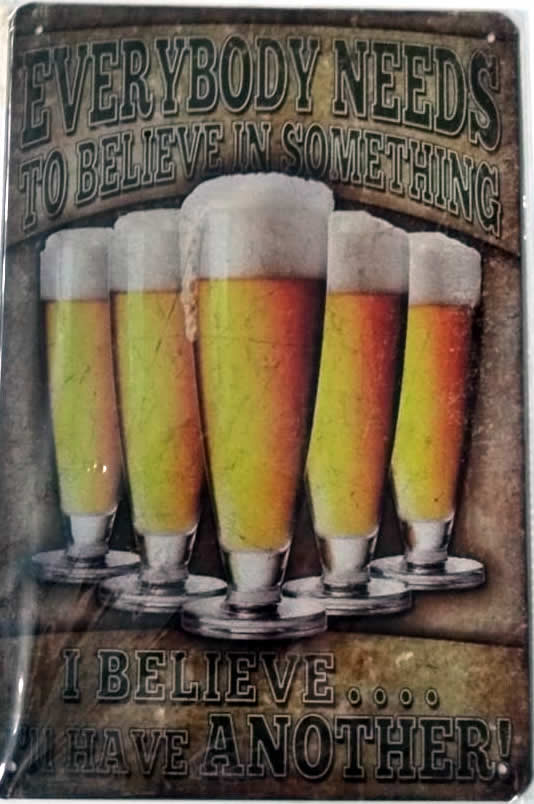 Пивная табличка Everybody needs to believe something I believe… i’ll have another!