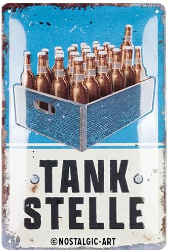 Nostalgic-Art Retro Tin Sign, 20 x 30 cm, Petrol Station Beer — Gift Idea for Beer Fans, Made of Metal, Vintage Design with Saying, Tin Signs Sayings, Beer Decoration