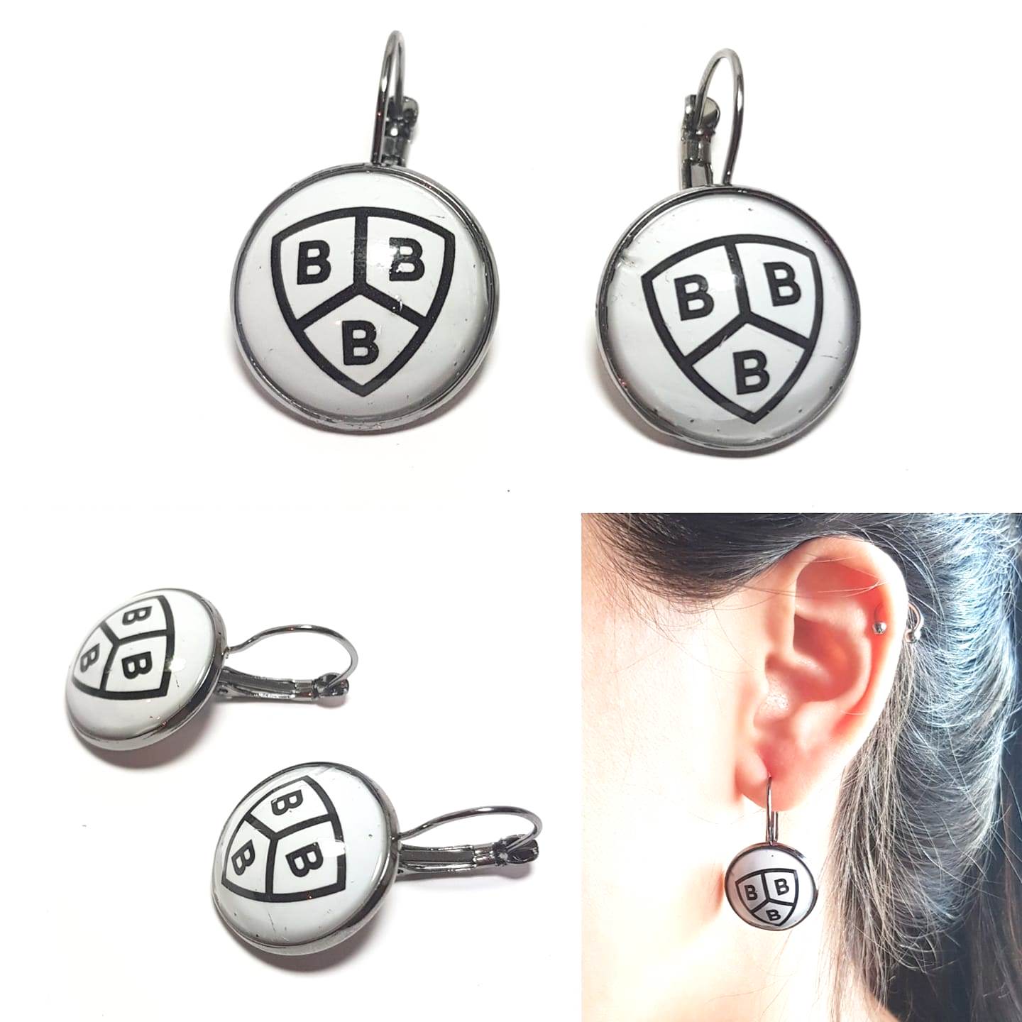 Серьги из нержавеющей стали, изготовленные из пивного листа баскской пивоварни Bidassoa. Покрыть лаком, чтобы изделие блестело и не царапалось.