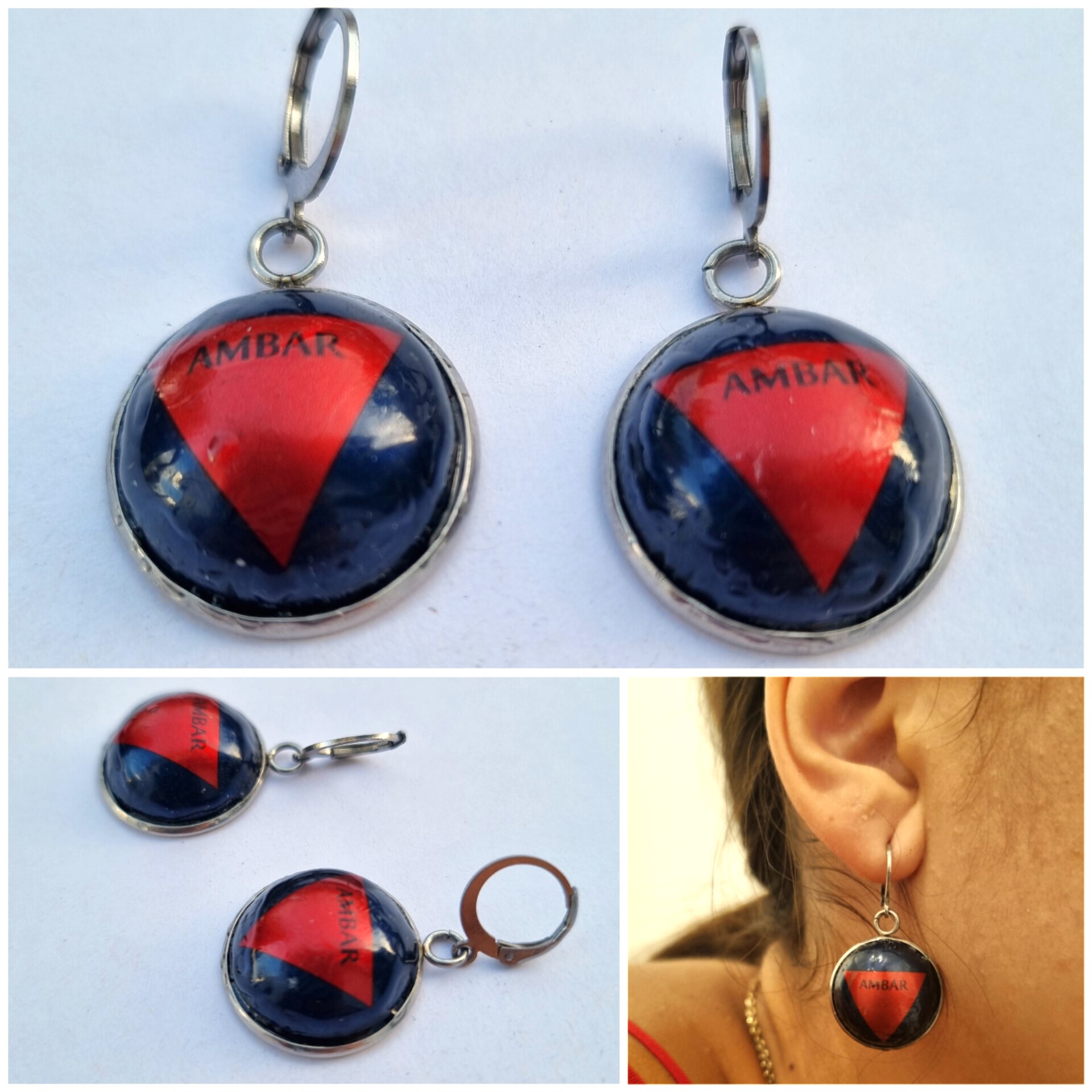 Серьги из нержавеющей стали, изготовленные вручную с оттенком вторичной переработки, с использованием пивных тарелок Ambar Export. Яркая и кристальная отделка, выполненная смесью лаков, благодаря чему изделие блестит и не царапается. Таким образом, он прослужит вечно, не потеряв рисунок листового металла.