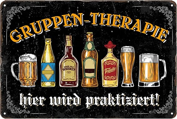 Funny Bar Sign, Group Therapy Here Is Practiced, Vintage Tin Sign Beer for Home, Café, Bar, Club, 20 x 30 cm