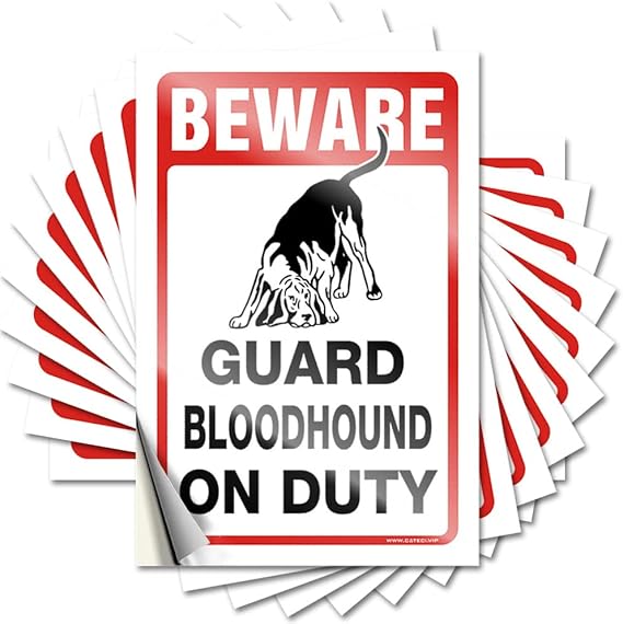 Lustige Autoaufkleber Beware! Guard Bloodhound On Duty, lustige Autoaufkleber, Bierschilder für Männerhöhle, 12 x 18 cm, 10 Stück