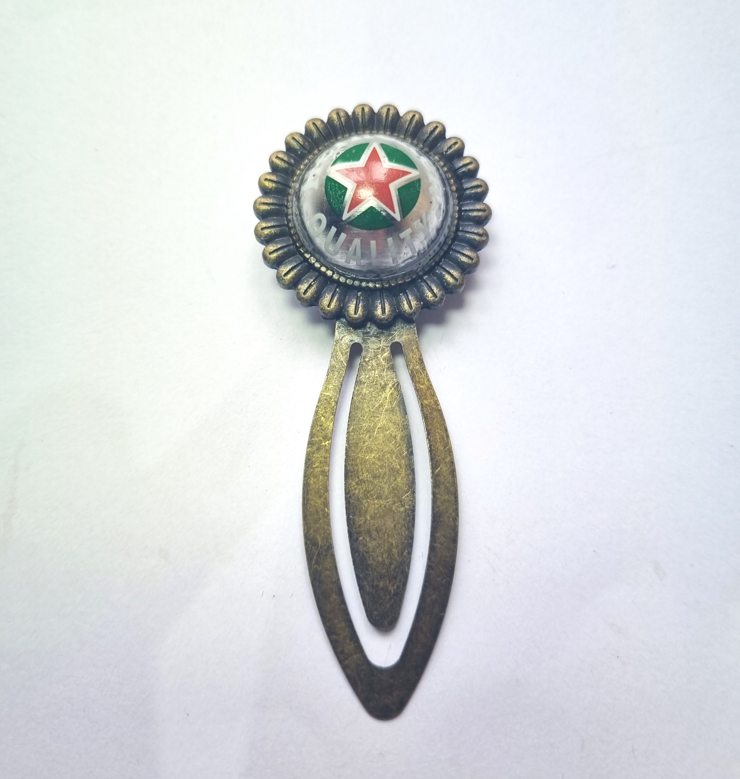 Закладка с пивным значком Heineken. Покрыть лаком, чтобы изделие блестело и не царапалось.