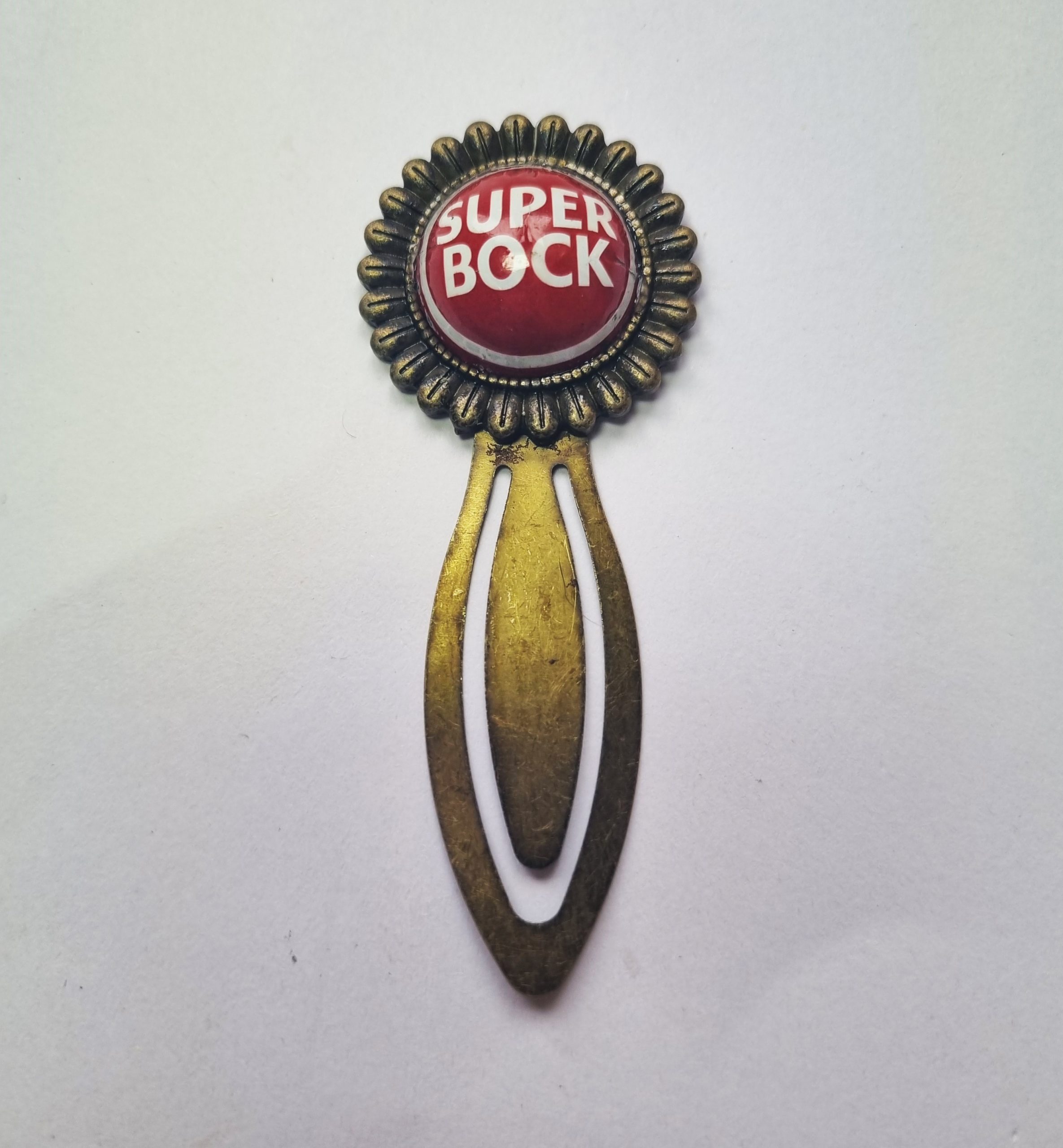 Закладка из пивного значка Super Bock. Покрыть лаком, чтобы изделие блестело и не царапалось.