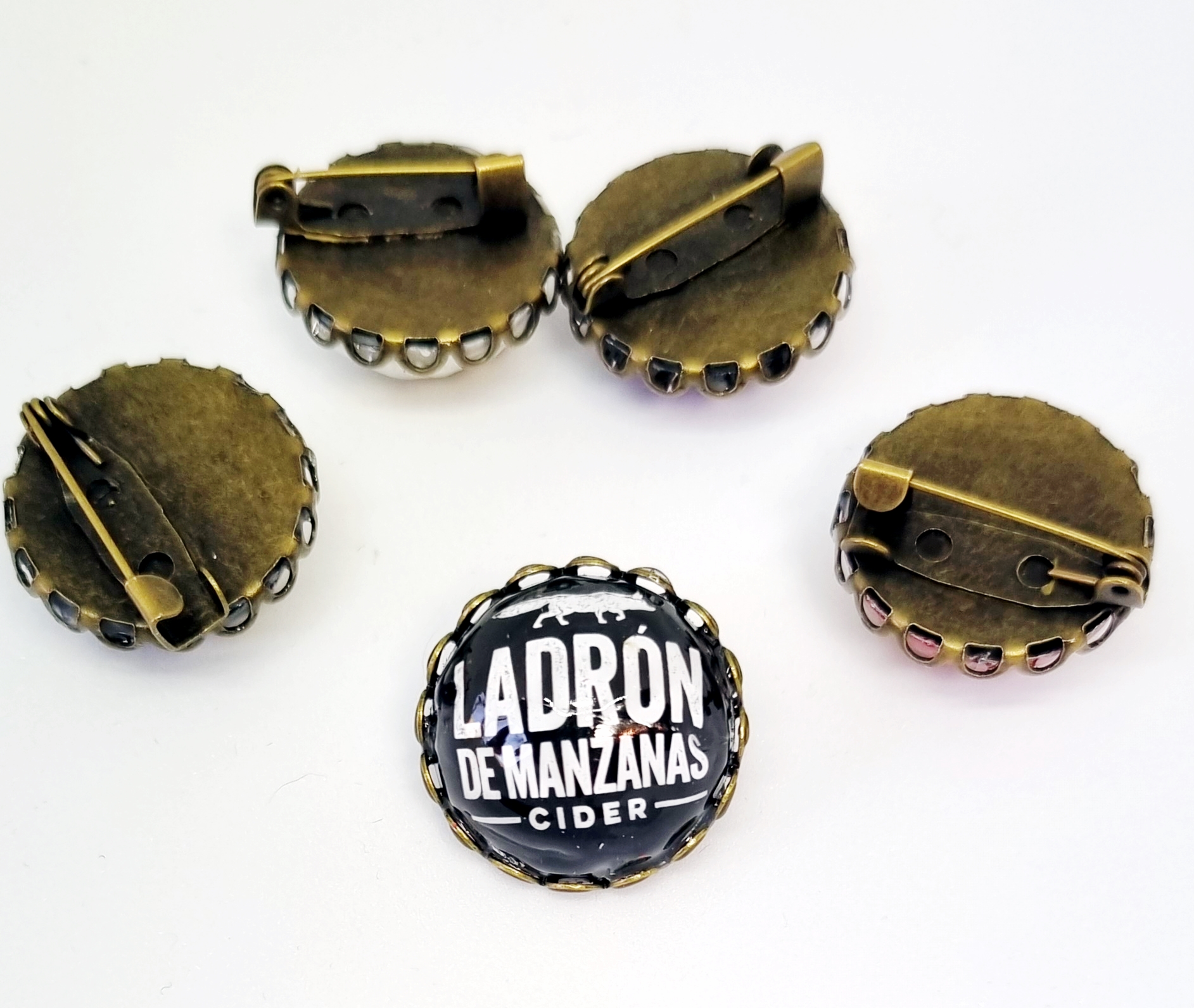 Английская булавка медного цвета, изготовленная с использованием вторичной переработки куполообразного металла марки сидра Ladrón de Manzanas.